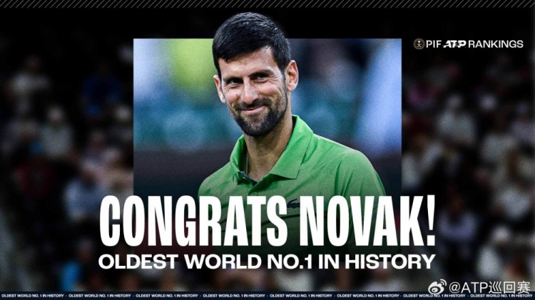 4月1日讯 据“ATP巡回赛”官方社媒报道,德约科维奇将以36岁321天的年龄,超越费德勒,成为ATP排名历史上最年长的世界第一。