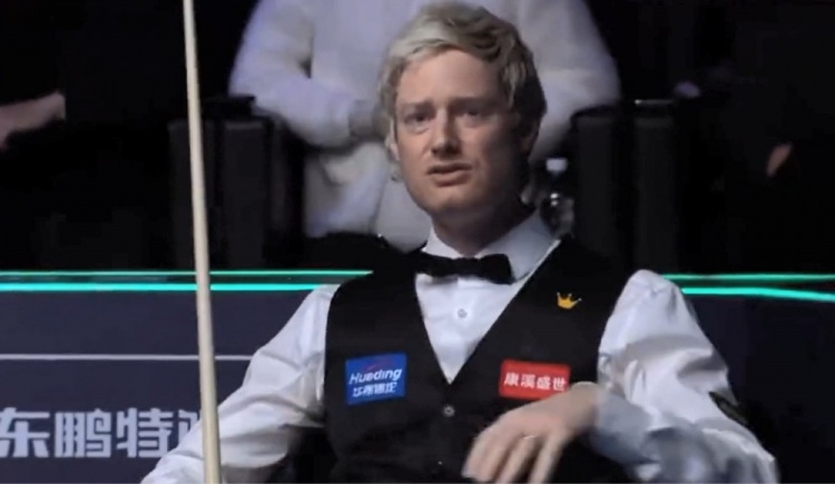 比赛第五局,罗伯逊在击打红球中袋时,因现场观众在击球时随意走动,导致击球失误。