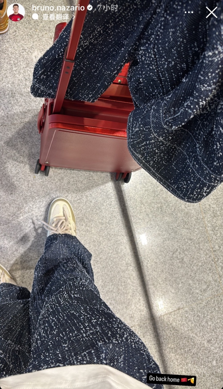 纳萨里奥更新社媒动态,晒出了两张他返程的照片,有一张他还配文“回家了”,并配上了五星红旗和敬礼的表情。