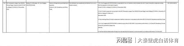 ②、4场禁赛里,其中的一场禁赛已在2025/26赛季亚足联冠军联赛第二阶段(小组赛)北京国安对阵麦克阿瑟FC的比赛中执行;